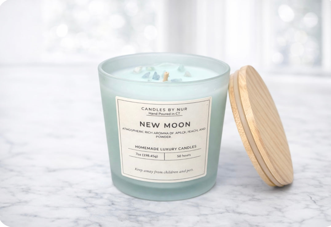 Hand-poured with premium wax and designed for a clean, even burn, New Moon is the perfect companion for moments of calm, clarity, and quiet transformation. Let its gentle glow and sophisticated fragrance guide your next beginning.